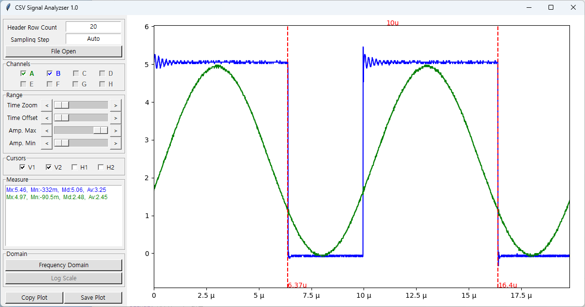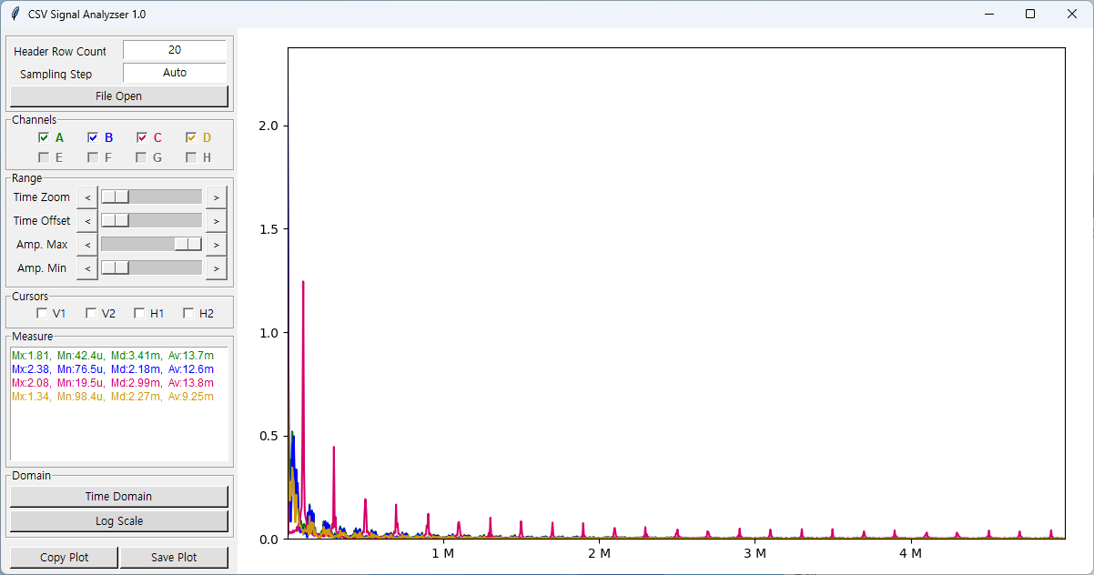 도구/기타 2024. 6. 9. 21:45오실로 스코프로 신호를 측정할 떄, 종종 측정 결과를 CSV 포맷으로 저장하는 경우가 있다. 이는 나중에 PC에서 후가공을 하거나 측정 결과 보고서를 작성할 때 첨부로 쓰기 위함일 것이다. 그런데, CSV로 저장된 파일은 PC에서 보기가 쉽지 않다. 스코프 제조사에서 제공해주는 도구를 사용하거나 엑셀을 사용해야 한다. 제조사 도구 같은 경우 제공되지 않거나 찾기 어려운 경우가 있고, 엑셀 같은 경우 CSV 파일이 크면 행수 제한으로 데이터까 짤리는 문제와 속도가 현저하게 느려지는 문제 등이 있다. 이에 쉽게 CSV 파일을 열어서 파형을 보고 쉽게 보고서에 Copy&Paste를 할 수 있는 도구를 만들어 보았다.