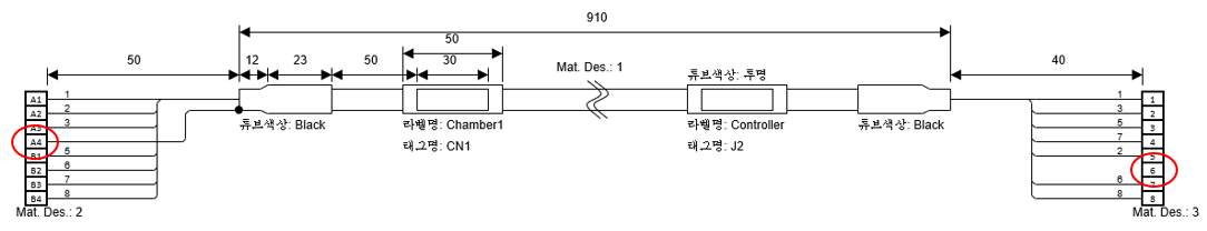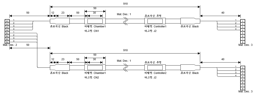| 추가 정보 | Type이 Cable인 경우, 수축튜브 직경 값 Type이 Connector인 경우, 핀 번호 prefix(옵션). Prefix는 콤마로 구분하여 다중 사용 |