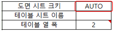 테이블 엑셀 시트의 A1 셀부터 도면에 표시될 표를 작성한다. 이때 헤더 부분의 각 항목은 “도면 생성” 시트의 Label A(B), Tag (A/B), 또는 길이와 이름을 같게 해주는 것이 바람직하다.